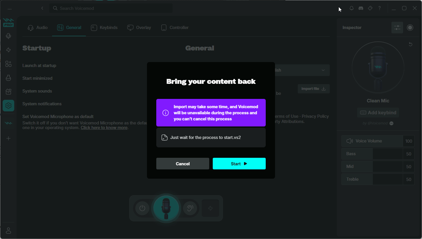 *Once you click Start**, it can’t be canceled, and you won’t be able to use Voicemod during migration.