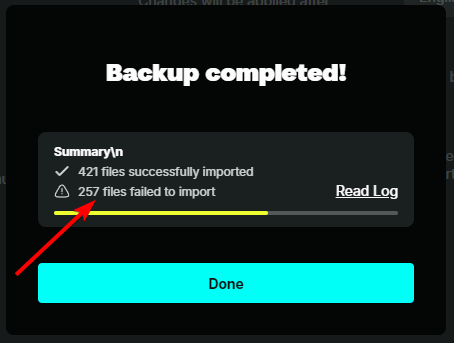 ⚠️ Once the process begins, depending on the size of your backup (especially if it’s several GBs), this process may take up to 1 minute per GB. Please be patient.