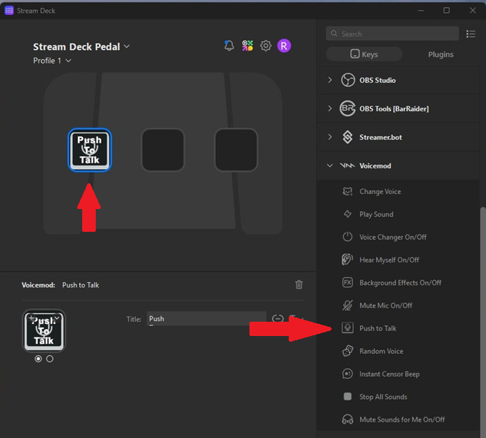 With StreamDeck Pedal and our plugin for Streamdeck, you can set a Push to talk key on your Streamdeck Pedal, along with other functions such as Disabling and Enabling your Voice Changer, playing your favourite Soundboards and so on!