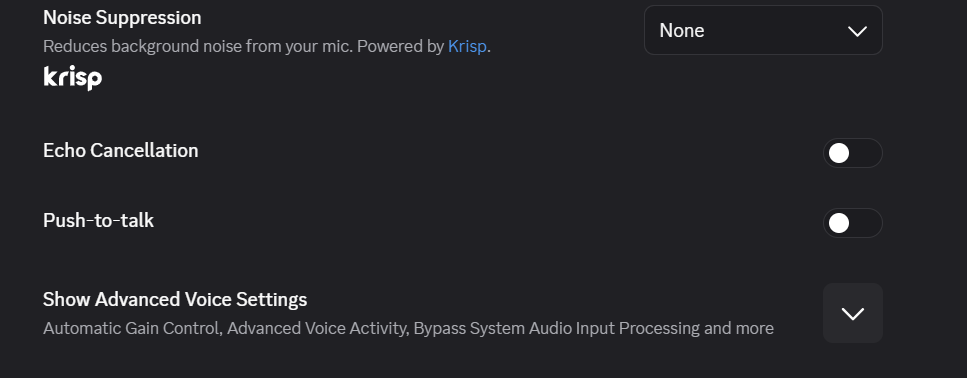- Go to settings > Voice & audio > Advanced and disable all these options: