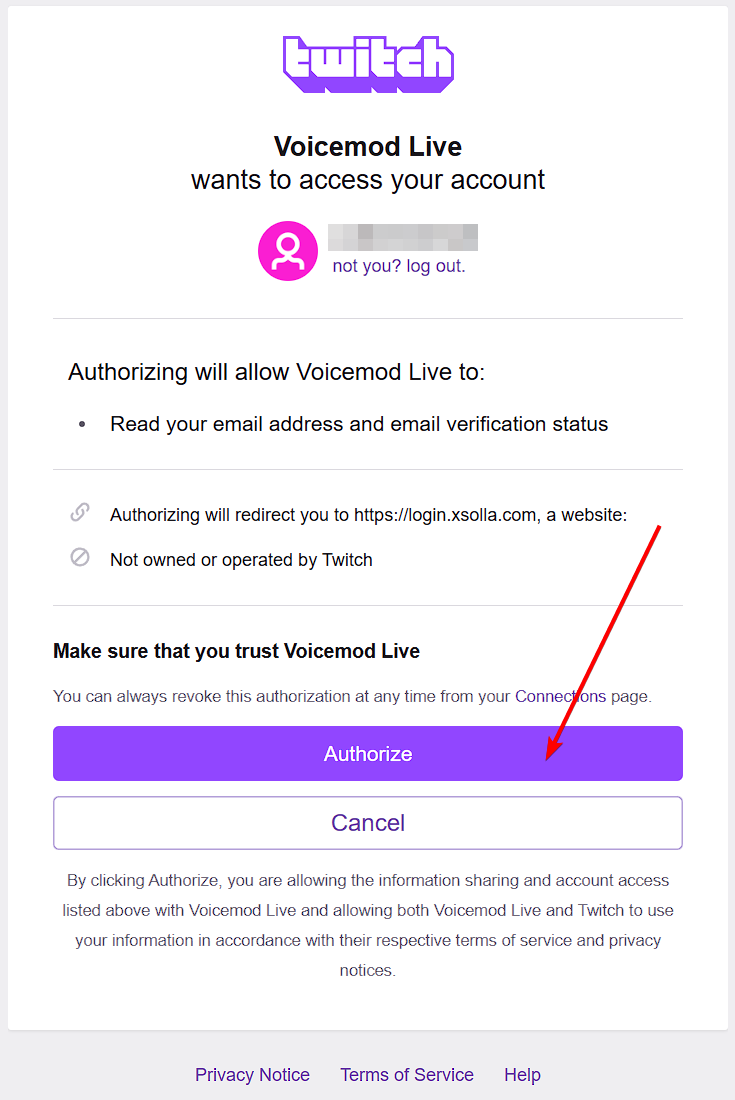 Please remind your viewers that if they want their name to appear, they must allow Twitch in the Voicemod panel to display their name.