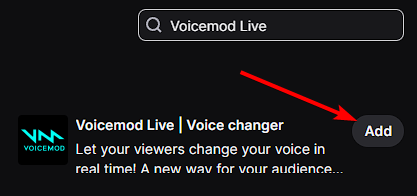 Then, you have to go to your Twitch dashboard, search for Voicemod Live in the search of Twitch Extensions page, and click on Add*.