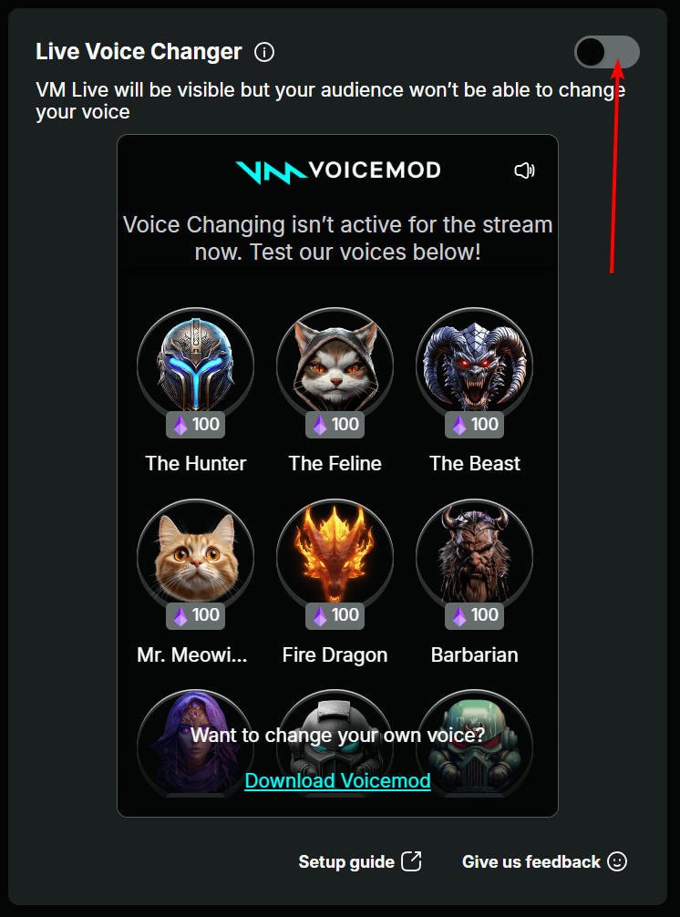 Let your viewers take control by changing your voice in real-time — turn your stream into a show!