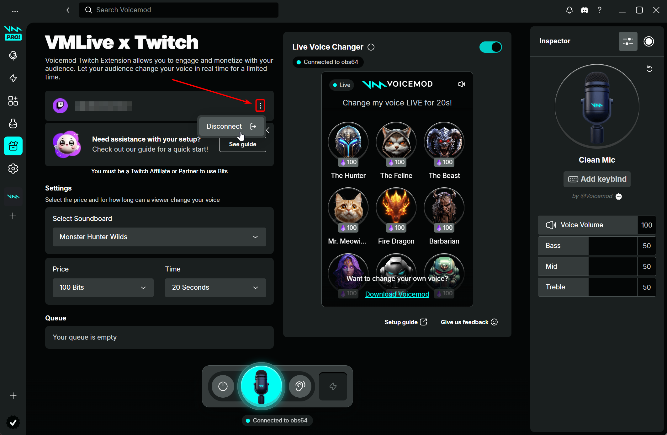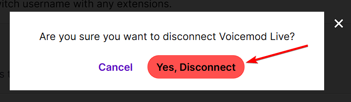 And in Voicemod v3, through the Extensions section - VMLive x Twitch, by clicking on "Disconnect".